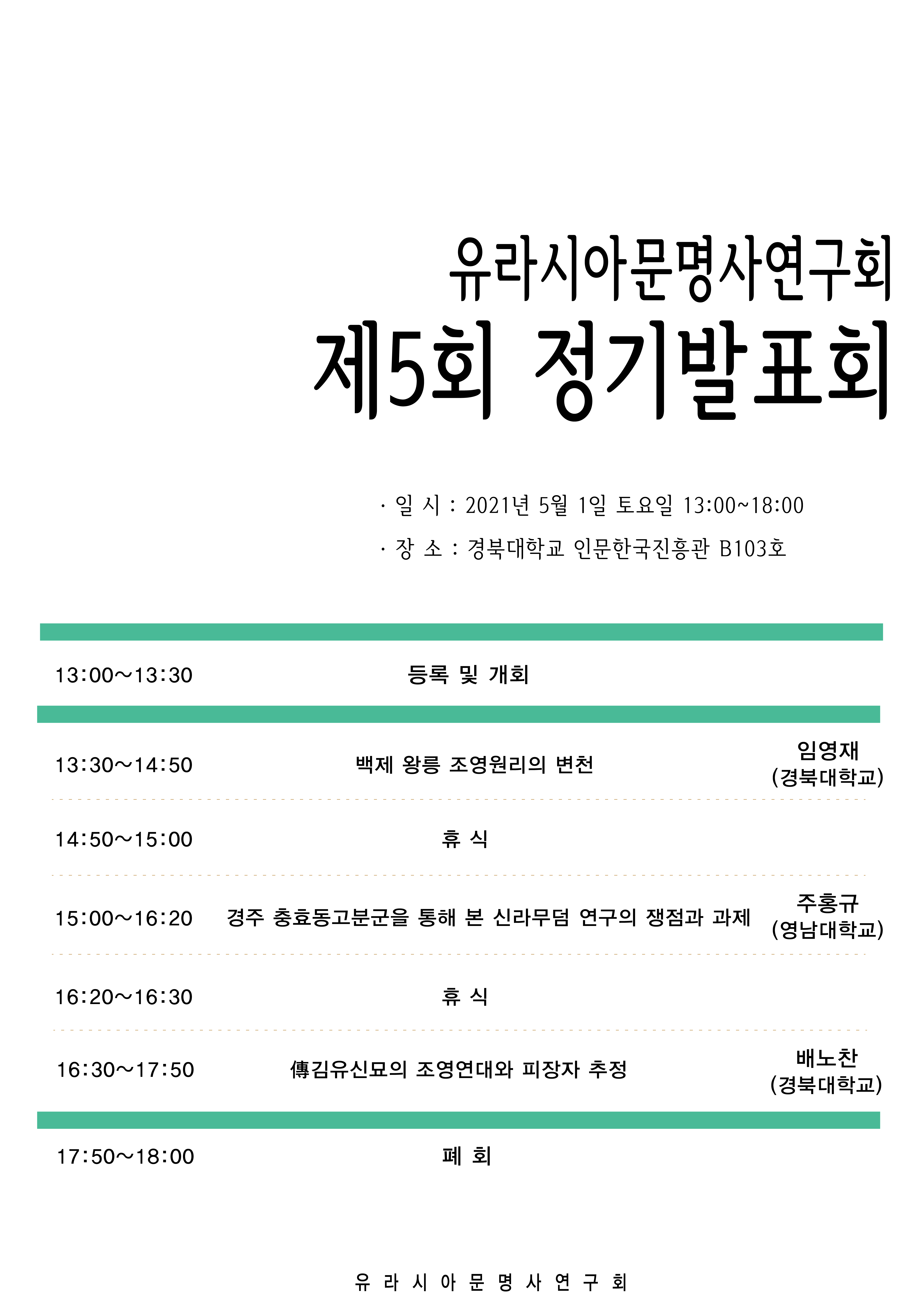 유라시아문명사연구회 제5회 정기발표회를 개최하고자 합니다.