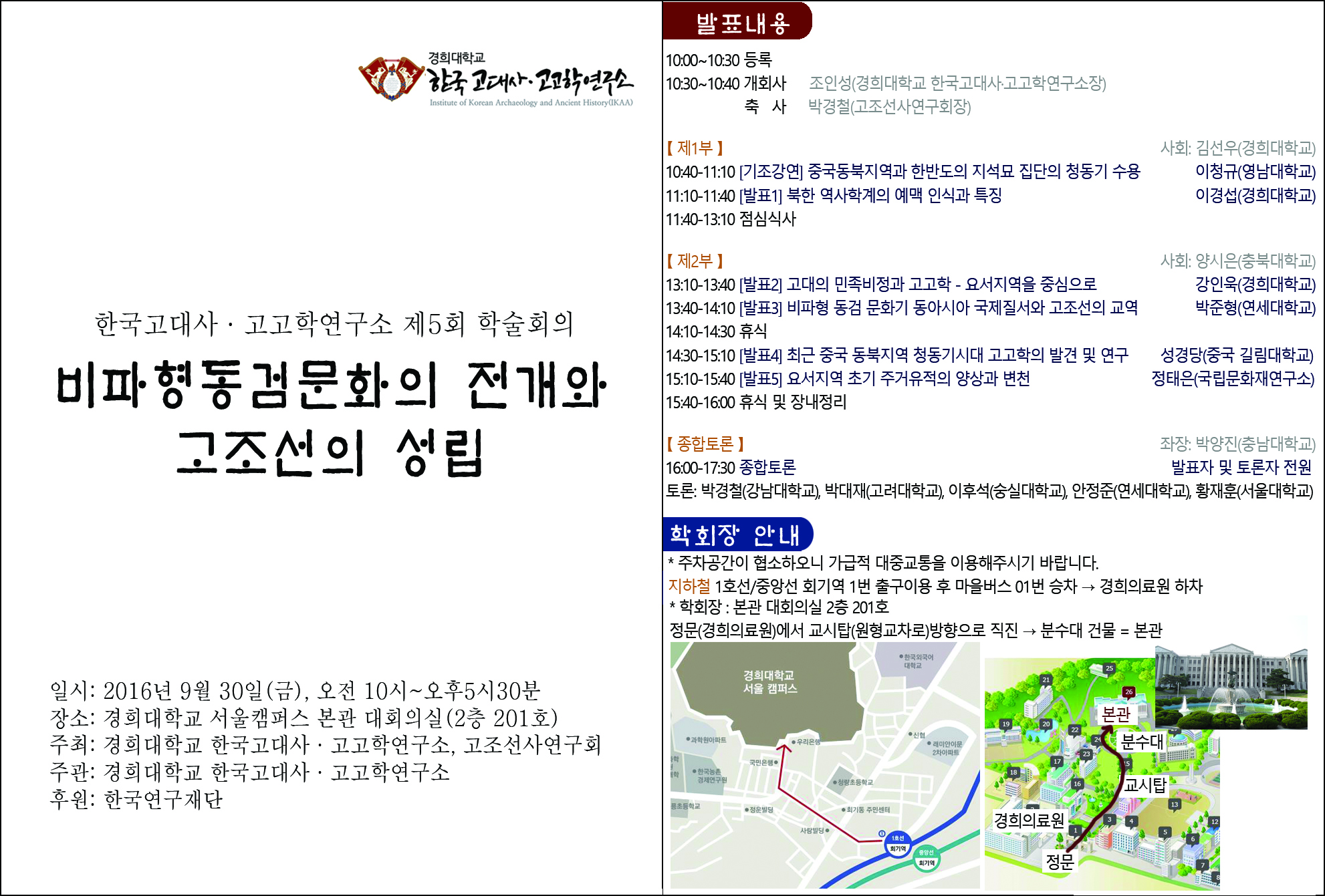 경희대학교 고대사ㆍ고고학연구소 제5회 학술대회 안내(9.30)