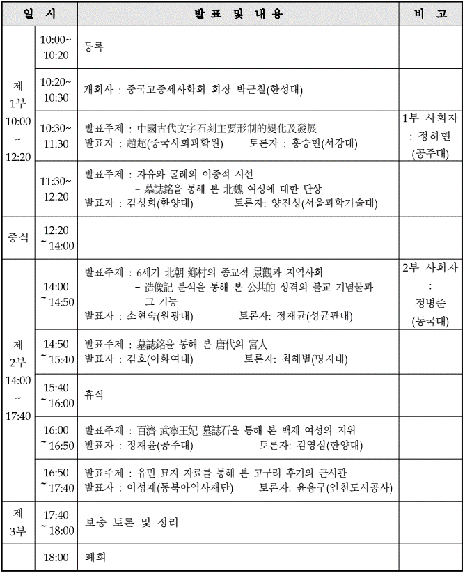 금번 학술대회는 한국연구재단(NRF)의 지원을 받아, 고중세 석각자료 강독회에 참가하고 계시는 회원님들이 주축이 되어