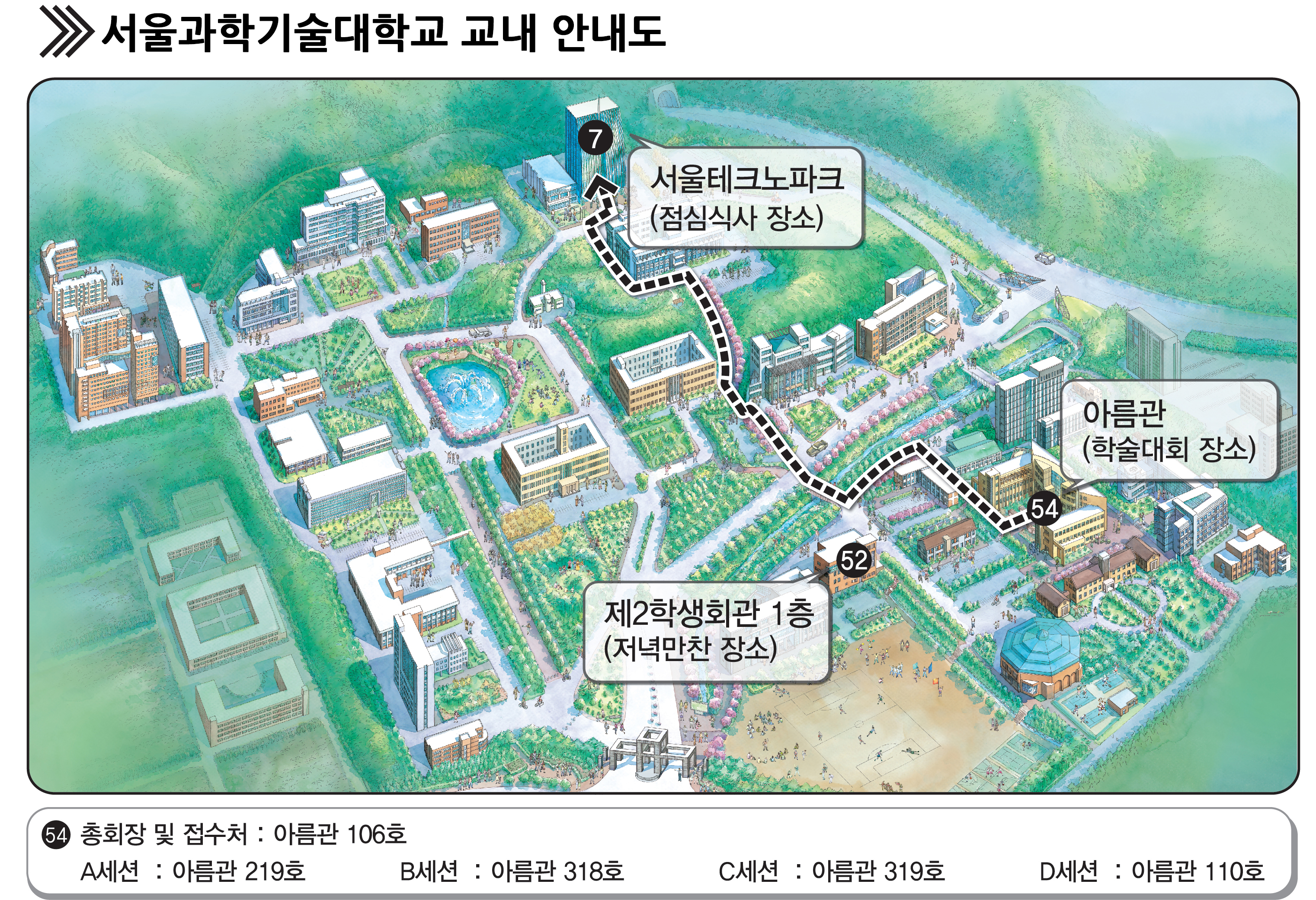 교내 안내도에 세션장 안내가 함께 되어있습니다.
