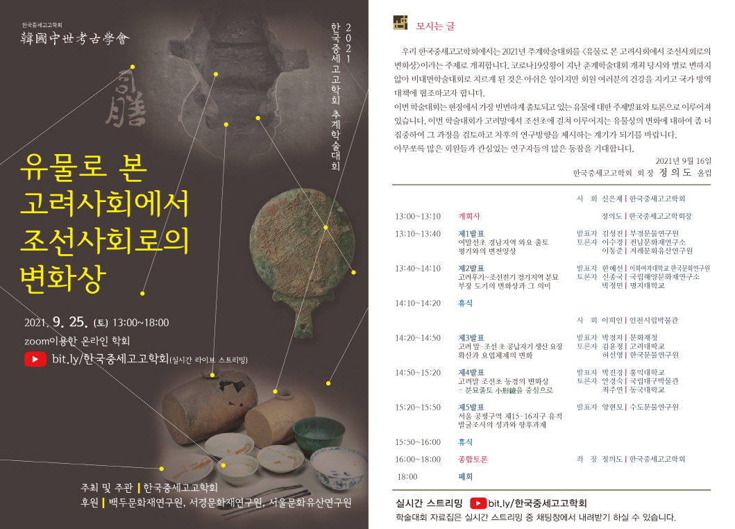 2021년 추계학술대회 <유물로 본 고려사회에서 조선사회로의 변화상>