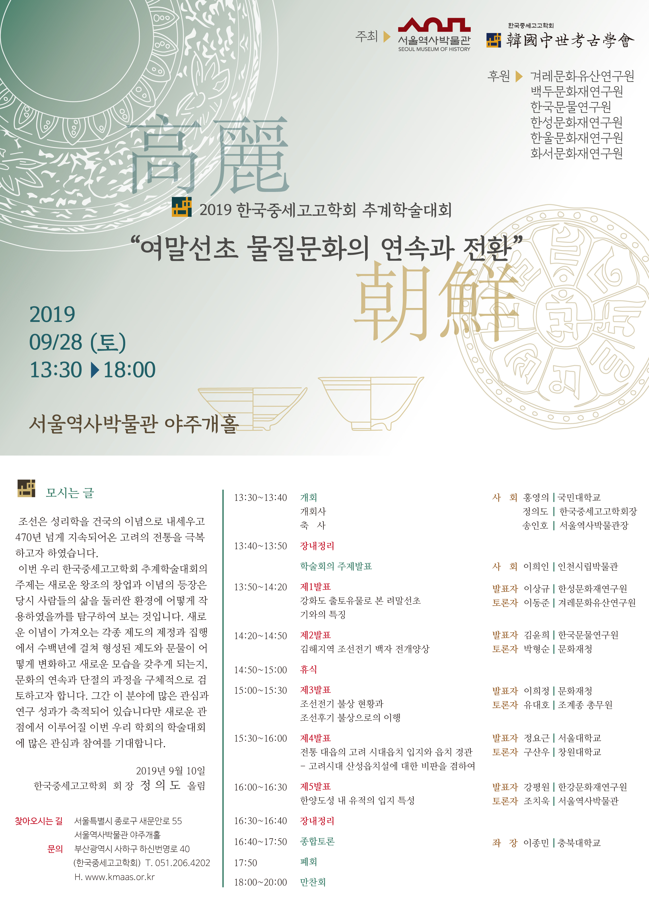 [학술대회 2019년 추계학술대회<려말선초 물질문화의 연속과 전환>
