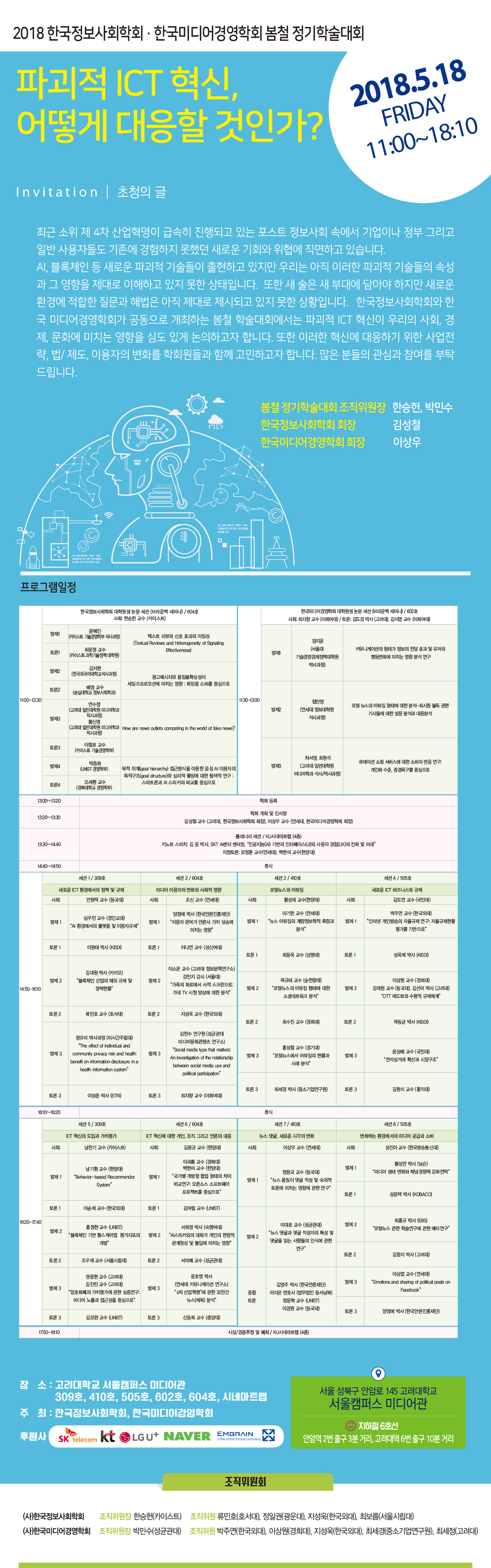 2018년 한국정보사회학회 봄철 정기학술대회에 회원 여러분을 초대합니다.