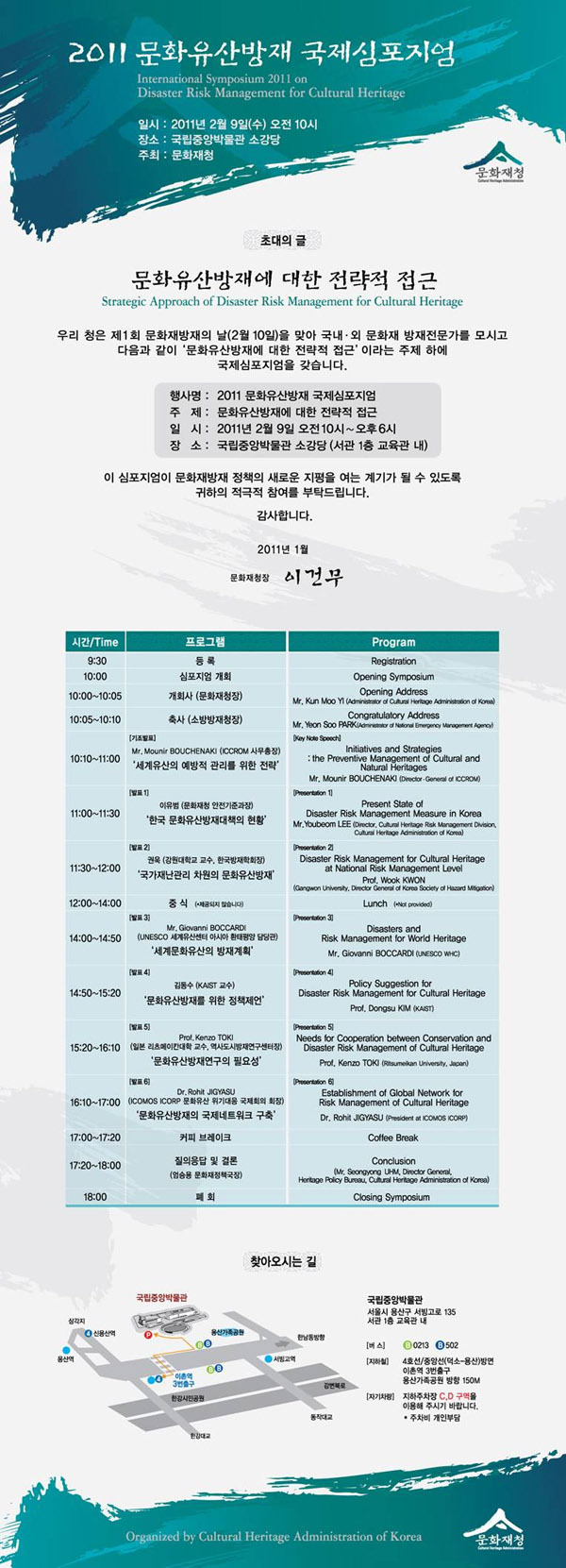 [홍보] 문화재청-문화유산방재 국제심포지엄에 초대합니다.