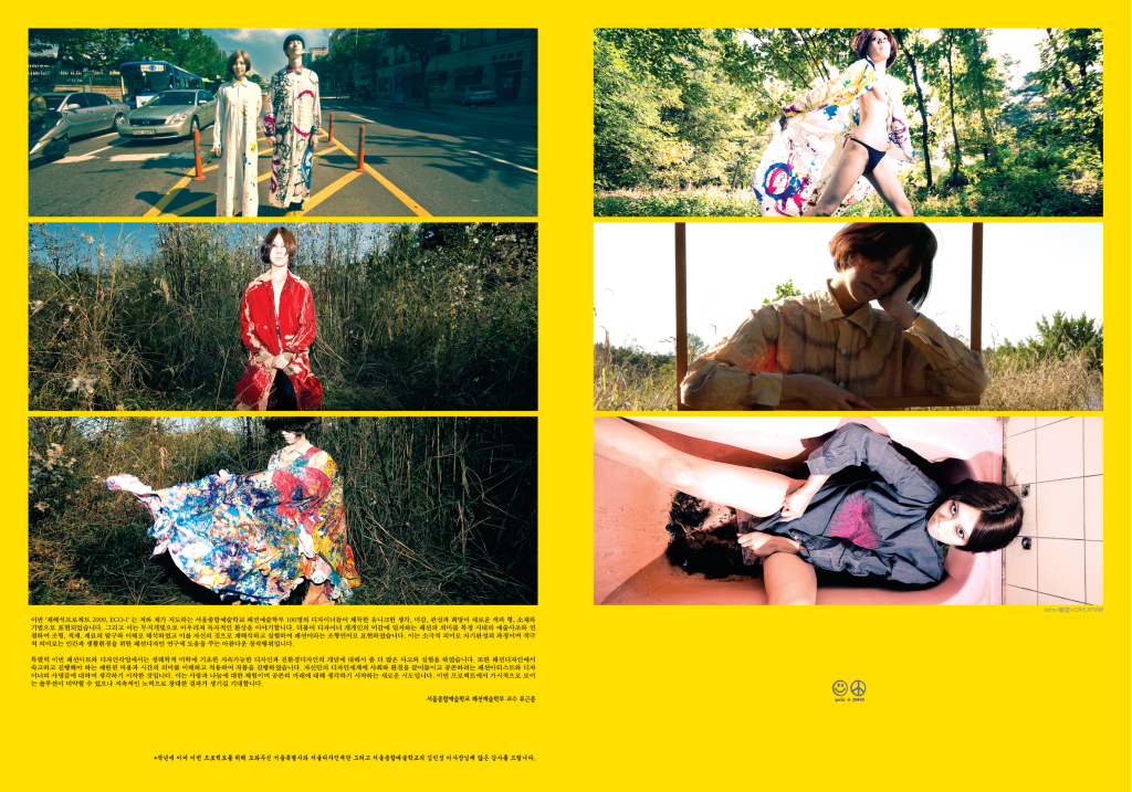 “재해석 프로젝트(Re-Creation Project)”라는 친환경패션에 관련된 주제로 지난 10여년간 왕성한 작품 활동을 하고 있으며 서울, 뉴욕, 런던, 동경, 상해 등의 초대개인전에서 많은 주목을 받았던 류근종교수는 “현재의 친환경 디자인은 제품의 생산, 유통, 소비, 폐기의 전 과정에 걸쳐 발생되는 에너지 소비, 재활용의 가능성, 오염도, 폐기문제 등의 총체적 개념에 대한 숙고와 함께 진행되고 있으며 패션디자인도 예외가 아니다. 이에 자원절약과 함께 공해를 최소화 할 수 있고 재활용이 가능한 친환경적인 패션디자인의 솔루션을 제안해야 한다. 이는 환경과 나눔 그리고 사랑의 정신이며 미래에 대한 준비다.” 라고 말하고 있으며 작가 본인의 작품에 대해 “수없이 만들어지고 폐기되는 서울의 대표적인 광고매체인 현수막이라는 오브제를 ‘지속가능성’이라는 친환경 디자인의 개념으로 재해석해보려는 시도의 시작이다. 또한 현대사회의 색과 이미지를 의상이라는 오브제에 함축시키려는 실험이며 이는 즉각적으로 시대의 현상과 사고를 반영한다고 말할 수 있다.” 라고 이야기 한다. 패션쇼는 총 8개 스테이지로 구성되고 있으며 서울종합예술학교 영상예술학부가 제작한 오프닝영상과 실용무용예술학부의 축하공연이 곁들여진다.