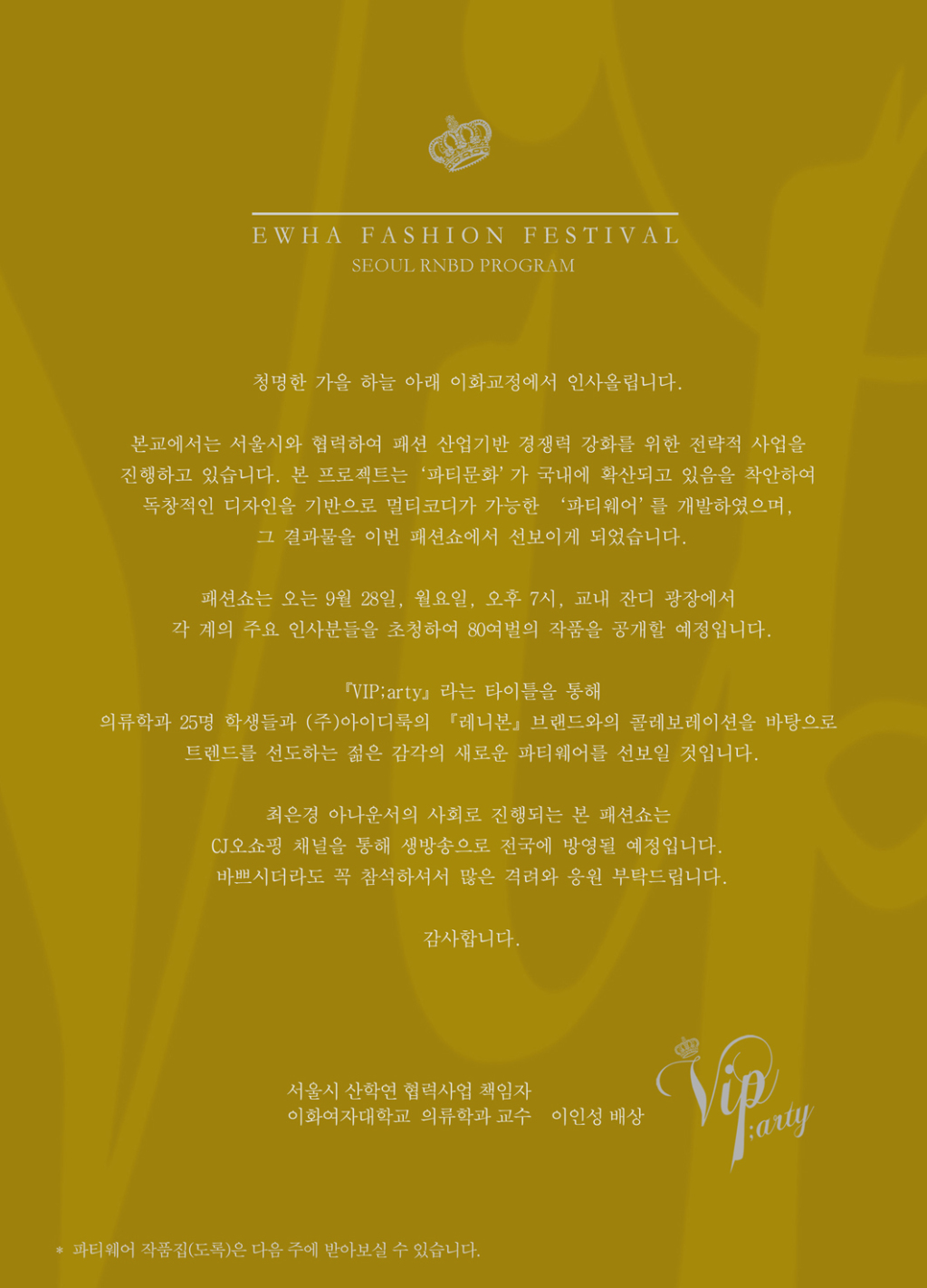 [홍보] 이화여자대학교 의류학과 졸업작품 패션쇼 안내