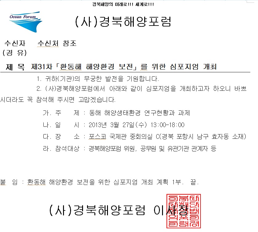 환동해 해양환경 보전 심포지엄 개최.hwp