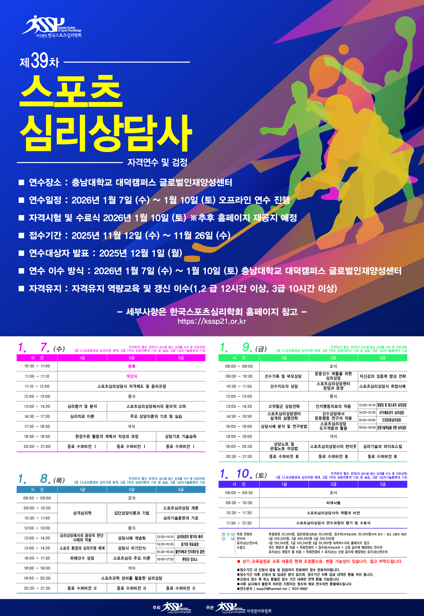 제 39차 한국스포츠심리학회 스포츠심리상담사 자격연수 및 검정시행 접수 안내(추가모집 ~12.3)