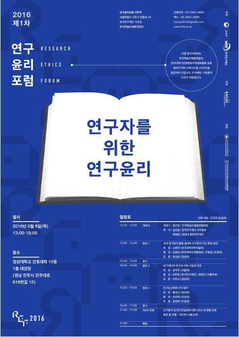 - 2016년 제1차 연구윤리포럼에서는 국내 연구윤리 활동의 실태와 연구윤리 의식 확립방안,
