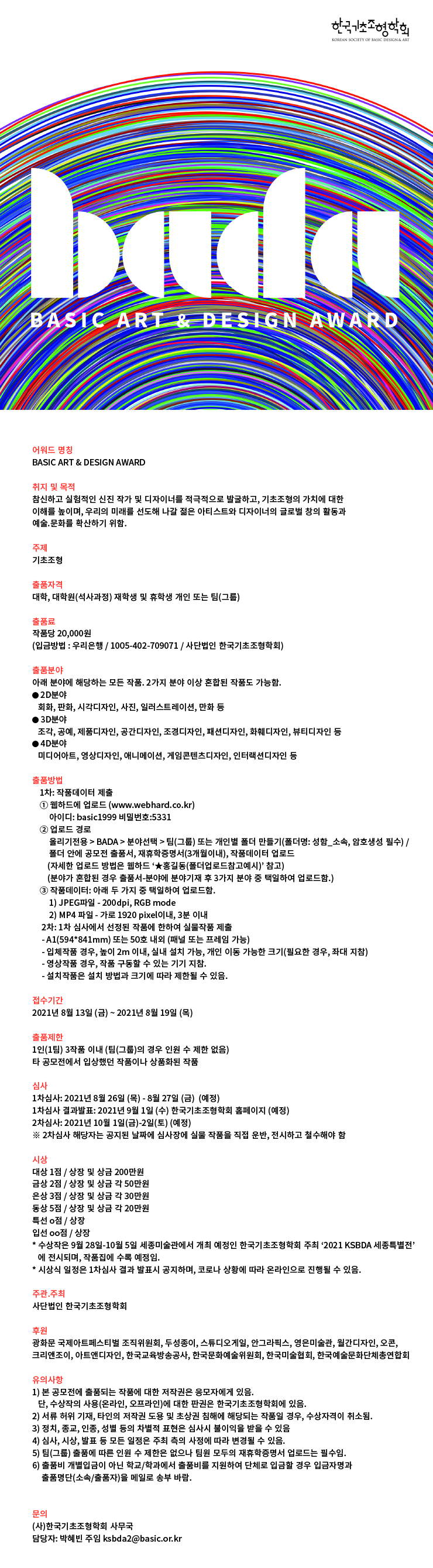 2021 BADA 기초조형 학생 공모전 개최안내
