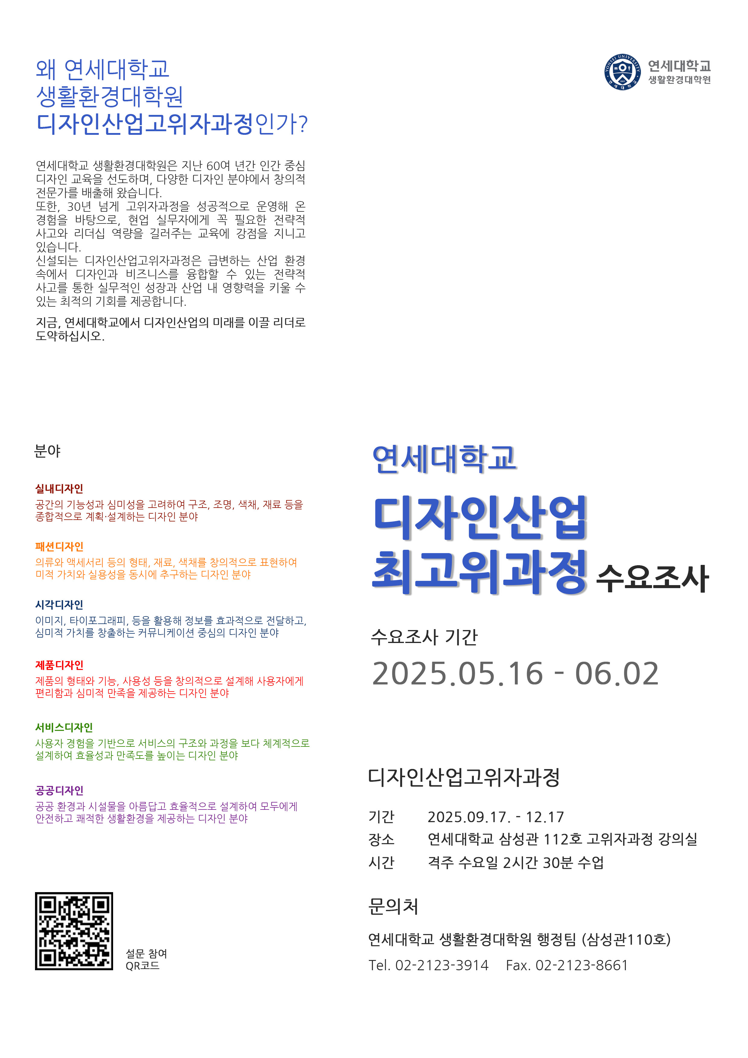 [연세대학교 생활환경대학원] 디자인산업최고위과정 수요조사 (조사기간: 무기한)