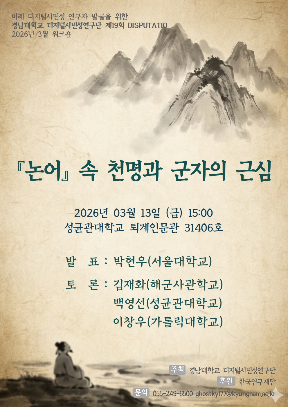 ‘경남대학교 교양교육연구소 디지털시민성연구단’에서 진행하는 <제19회 Disputatio>에 학내외 여러분을 초대합니다.