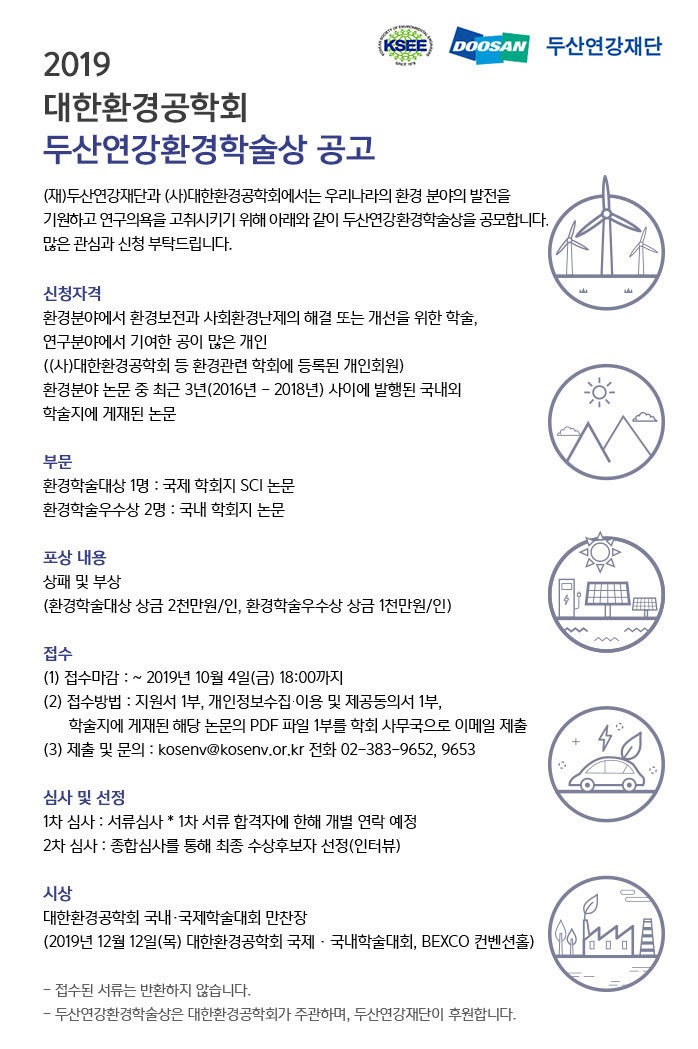 2019 대한환경공학회 두산연강환경학술상 공고