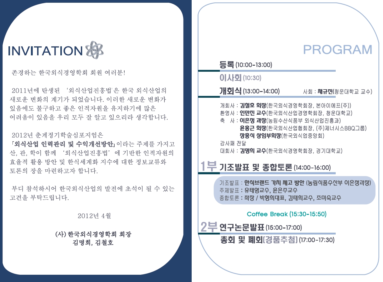 (사)한국외식경영학회 이사회 및 총회 안내