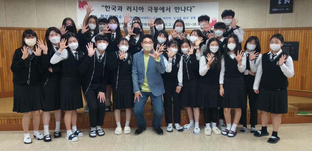 The Russian Research Institute (Director: Prof. Sang-Yong Pyo of the Department of Russian Language) was held twice, on November 2, 2021 (Tuesday) Ulsan Foreign Language High School, and on December 24 (Friday) Sokcho High School, as part of the HK+ Regional Humanities Center project. Humanities Lecture. Professor Hwang Seong-woo, who was in charge of the lecture, said at Ulsan Foreign Language High School, “Korea and Russia meet in the Far East,” at Sokcho High School, “Russia for us? Through the theme of “The History of Meeting between Korea and Russia”, he emphasized the need for exchanges in the future and the history of the long meeting between Russia and Korea.