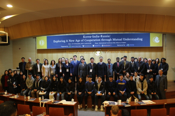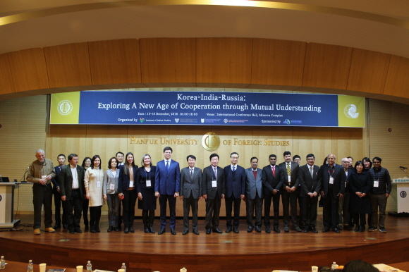2018년 12월 13~14일 이틀에 걸쳐 러시아연구소는 한국외대 서울캠퍼스 미네르바콤플렉스 국제회의실에서 “한국-인도-러시아상호이해를 바탕으로 한 새로운 협력의 시대 모색 (Korea-India-Russia: Exploring A New Age of Cooperation through Mutual Understanding)이라는 주제로 국제학술회의를 개최했다.