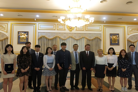주한러시아연방대사관은 2018년 6월 26일 <8회 전국 대학()생 러시아어 토론대회수상자 전원을 초청해 별도의 수상식을 열었다한국외대에서는 강덕수 부총장과 김준석 러시아연구소 HK연구교수러시아학과 올가 무란 교수가 참석했다.