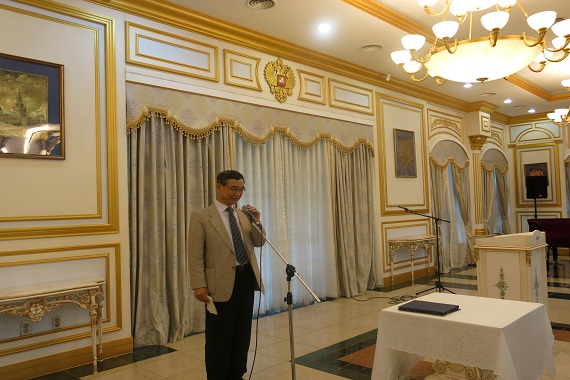 모스크바 출장 중인 알렉산드르 티모닌 대사를 대신해 드미트리 쿨킨 참사관이 학생들에게 상장을 수여하고 축하를 전했다.