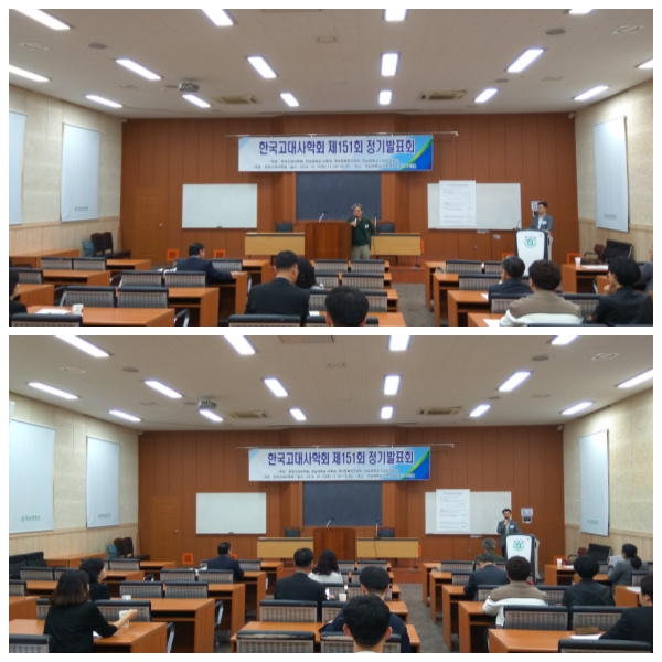 제151회 정기발표회 박대재 선생님 사회, 이강래 회장님 개회사 모습입니다.