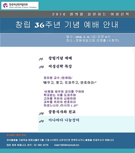 포스트모던 여성신학 연구반 2016-4월 모임 안내