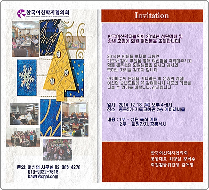 2014년 여신협 성탄예배 및 송년모임 안내입니다