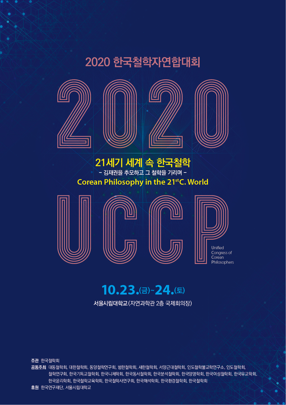 o장소 : 2020년 10월 23일(금) - 서울시립대학교 자연과학관 국제회의장(오프라인 + 온라인(ZOOM) 병행)