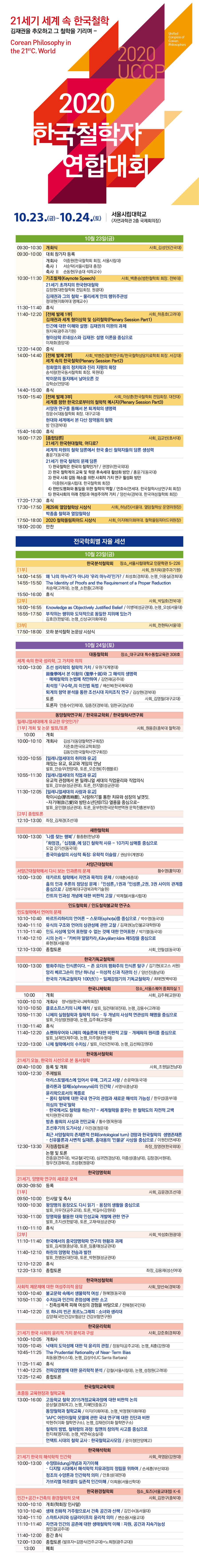 새한철학회에서 알립니다. 10월 24일 - 한국철학자 연합대회 새한철학회 섹션 안내입니다.