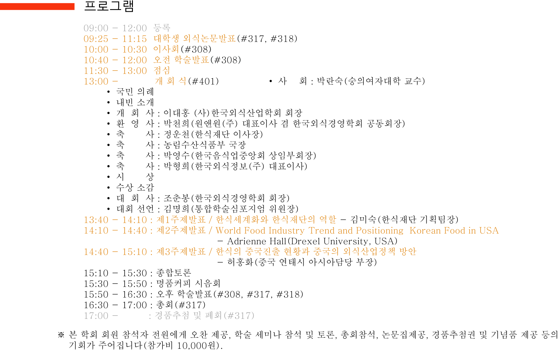 • 대 회 사 : 조춘봉(한국외식경영학회 회장)